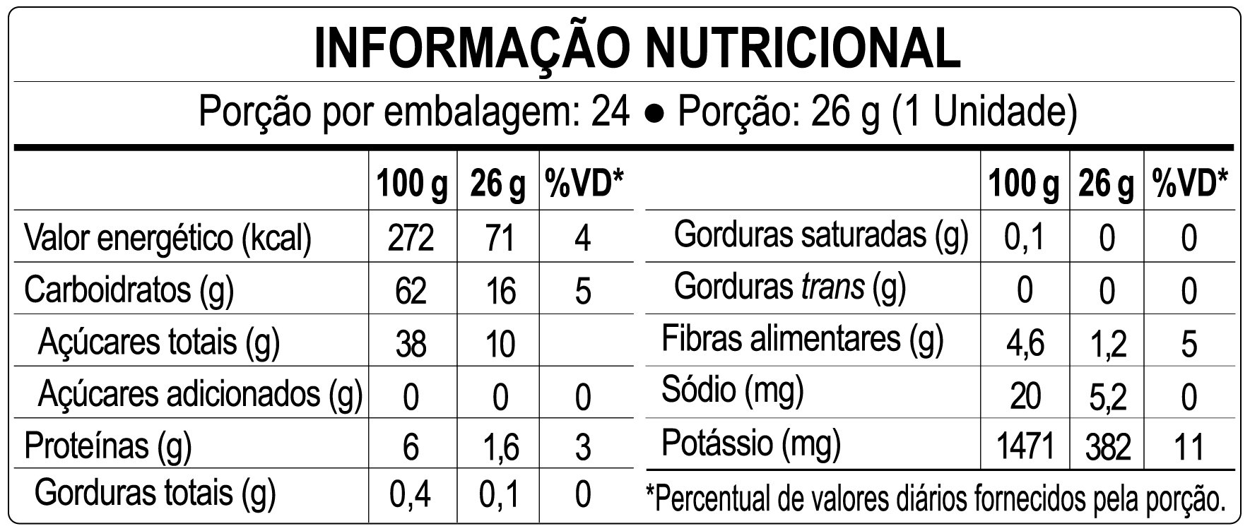 O Display contém 24 unidades com 26 gramas cada.